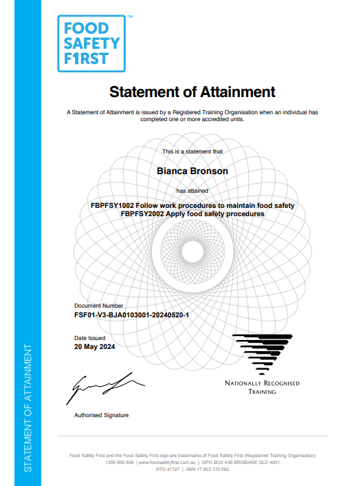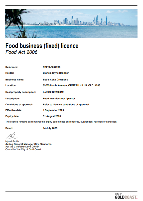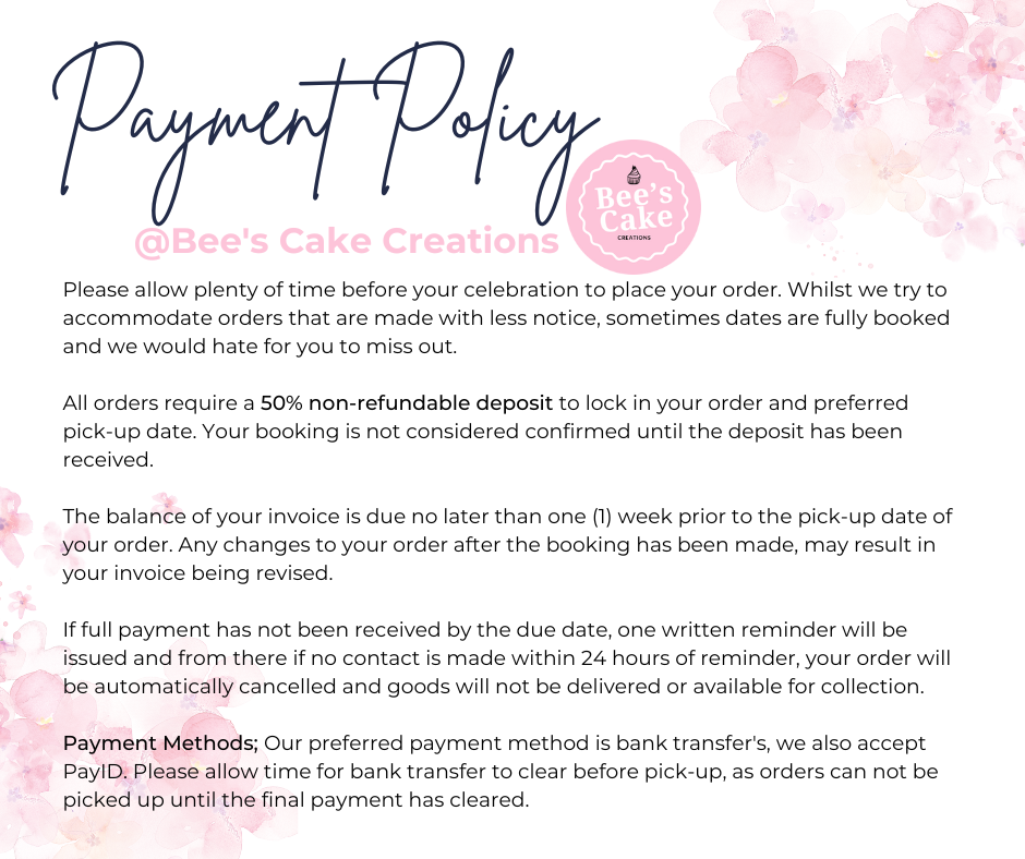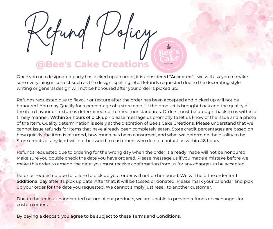 Please refer to the below payment & refund policies. Also attached is my accreditation with ACADA & Food Licence from the GCCC.